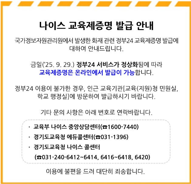 홈페이지 지원센터 이용 시에는 소속학교 확인을 위해 기존 학교관리자계정(goegy--) 사용하여 수정사항 요청